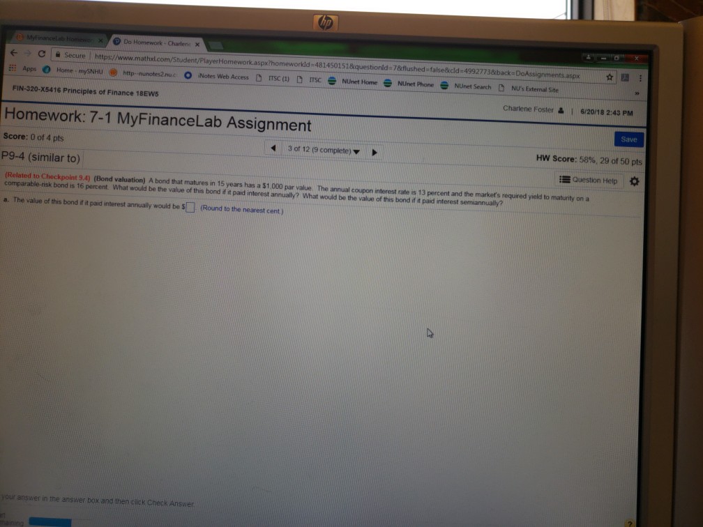 Finance Final Flashcards | Quizlet Consider a zero coupon bond with 20 years to maturity. The amount that the price of the bond will change if its yield to maturity decreases from 7% to 5% is closest to: A. $120 B. -$53 C. $53 D. $673. A. $120. Consider the following four bonds that pay annual coupons: The percentage change in price of the bond "A" if its yield to maturity ... How to Calculate Yield to Maturity of a Zero-Coupon Bond The formula for calculating the yield to maturity on a zero-coupon bond is: Yield To Maturity= (Face Value/Current Bond Price)^ (1/Years To Maturity)−1 Zero-Coupon Bond YTM Example Consider a... QUESTION 21 Consider a zero coupon bond with 20 years to maturity The ... QUESTION 21 Consider a zero-coupon bond with 20 years to maturity. The price this bond will trade at ifthe YTM is 6% is closest to: $215 $312 $335 $306 Bond value 1000 1+0.06^20 Bond value 1000 3.207135472 Bond value $ 312 QUESTION 22 An investor purchases a 30-year, zero-coupon bond with a face value of $1000 and a yield to maturity of 6.5%.